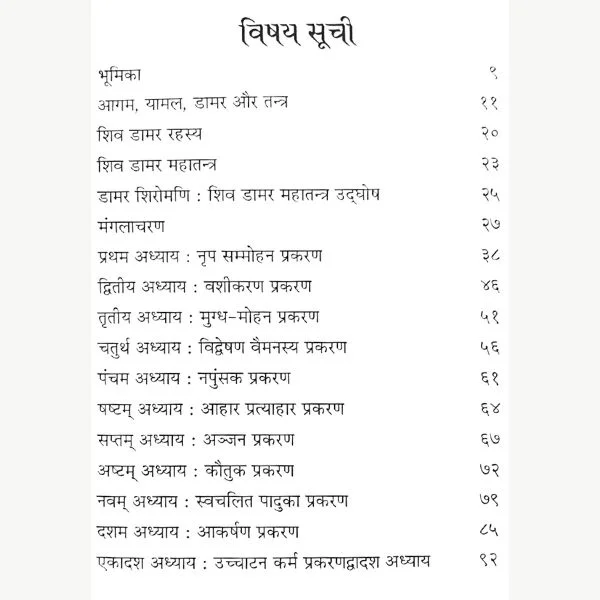 Shiv Damar Mahatantra Book (शिव डामर महातंत्र पुस्तक) is an ancient Tantric text dedicated to Lord Shiva, containing a variety of practices and knowledge related to Shiva and Kali, including Agora rituals, mantras, yantras, and rituals for spiritual growth, protection, and supernatural abilities. It also elaborates on Shivambu (self-urine therapy), Bhasma rituals, and knowledge of herbs for health and their use in rituals such as Vashikaran (hypnotism), Uchhatan (exorcism/banishment), and other Shadkarma practices.