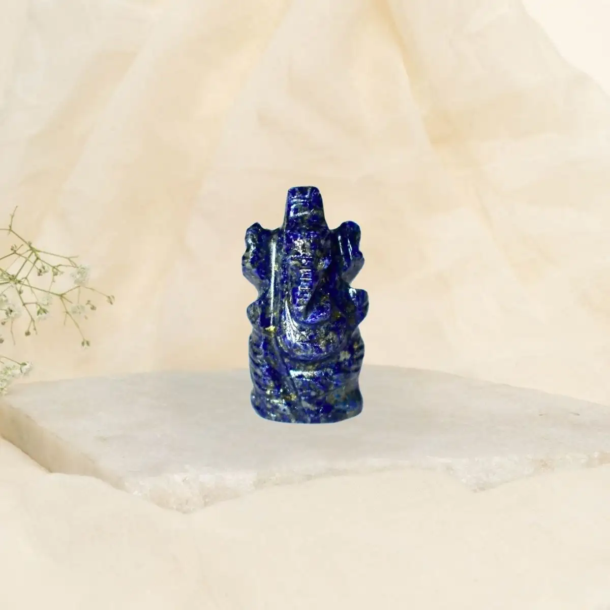 A Lapis Lazuli Ganesha Murti (लाजवर्ड स्टोन गणेश मूर्ति) is used to evoke blessings for wisdom, prosperity, and the removal of obstacles. Worshippers can lay it on an altar or study desk, meditate with it, or carry it for spiritual direction. The Lapis Lazuli stone is thought to boost Ganesha’s blessings of wisdom and understanding by adding its own qualities of clarity and spiritual awareness.