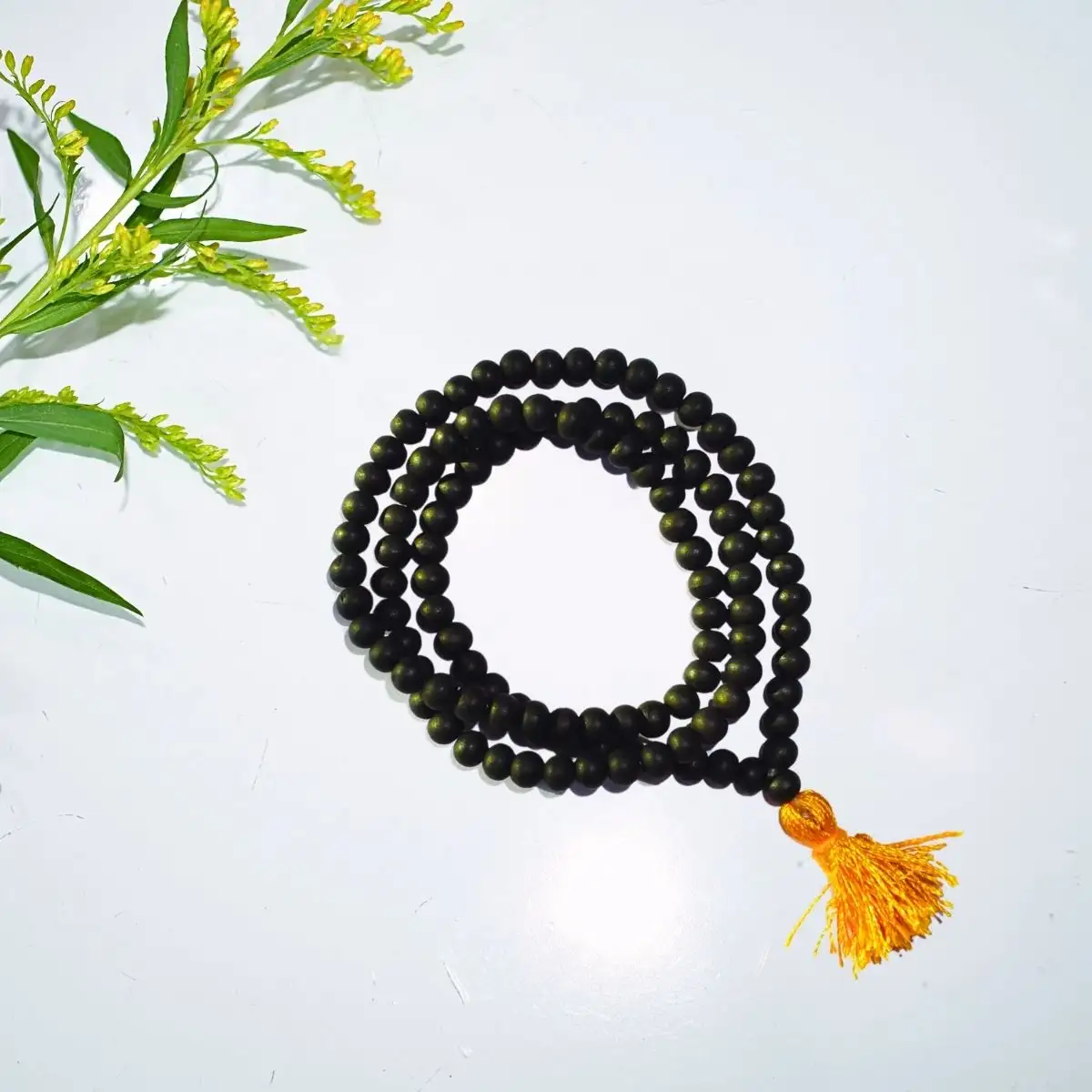 Ebony Mala (एबोनी माला) is a traditional and spiritual accessory made from the dark, rich wood of ebony. It is often used in meditation, prayer, and chanting because it is believed to bring calmness, strength, and focus. It is associated with deities like Lord Murugan and Goddess Kali..