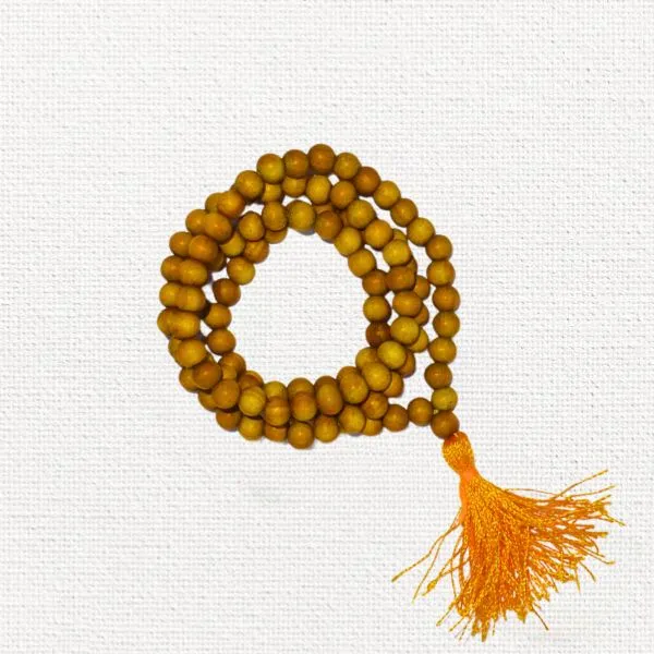 Mala white sandalwood beads one should hold to obtain abundance and prosperity.