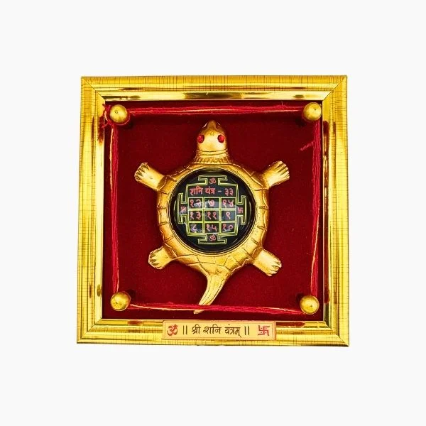 Shani Frame Yantra/Turtle Shani Yantra (शनि फ्रेम यंत्र): This is for the blessings of planet Saturn in all careers, money, fame, and glory. It also pacifies the male planet Saturn in the horoscope. When Saturn is not good, it can cause many problems. Examples are conflicts and bad financial situations. In such situations, Shani Yantra can bring peace and comfort. Turtle Shani Yantra should be worshiped as long as Sade Sati or Dhaiya of Saturn is in form. Workers can succeed in life only by the grace of Saturn. Removes all negative and malefic aspects of Saturn. It also helps prevent diseases caused by weakness, burns, or inimical signs in the horoscope. Shani Frame Yantra reduces the bad effects of evil Saturn and brings all the blessings of Lord Saturn, thus beautifying one’s life with divine splendor.