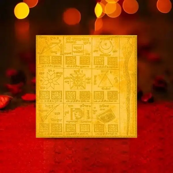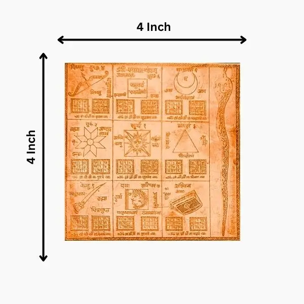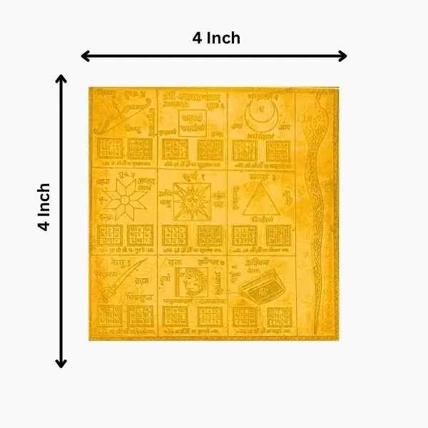 Shree Navgrah Yantra, Navgrah Dosha Shanti Yantra, Copper & Gold Plated, 4X4 Inch